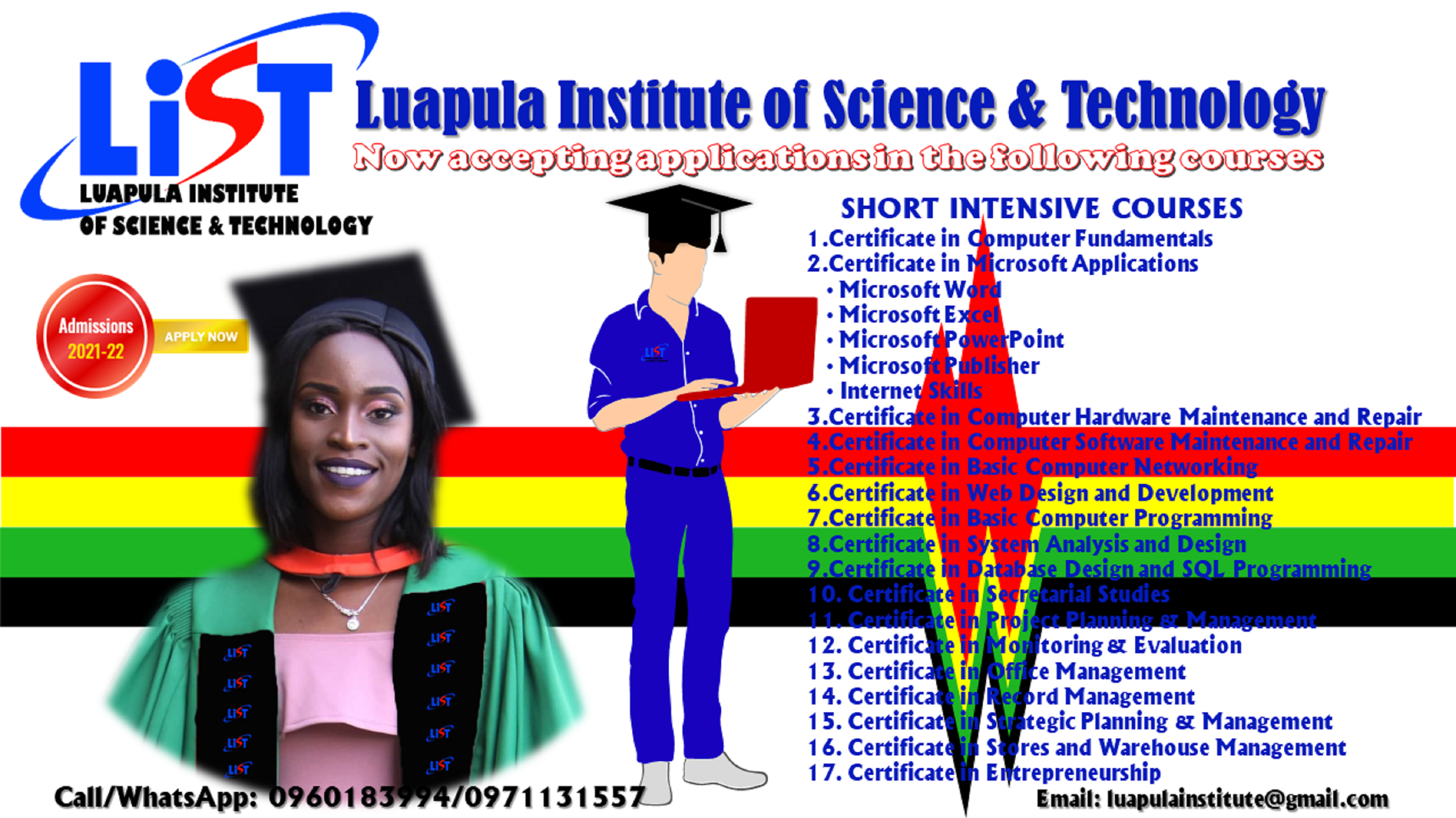 • Developer of the College Information Management System plus website for Mwense Trades Training Institute (MwTTI) hosted at https://mwensetrades.com